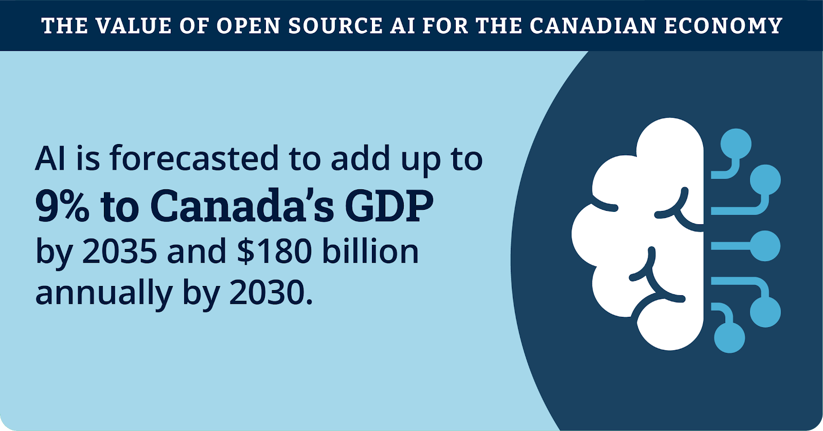 It’s no secret that Canada’s productivity rate trails the United States by about 30%. AI is our best shot at closing that gap, with the potential to increase worker productivity by an average of 8%.